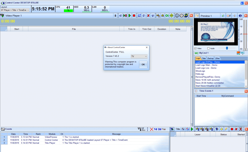 DV Play 7 is a modern playout / tv automation solution designed to be used in TV Channels. It was developed since 2001 based on customer’s requirements & feedback and we are proud to present to you our complete and tested playout software.