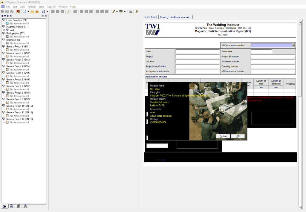 Non-destructive testing report management software